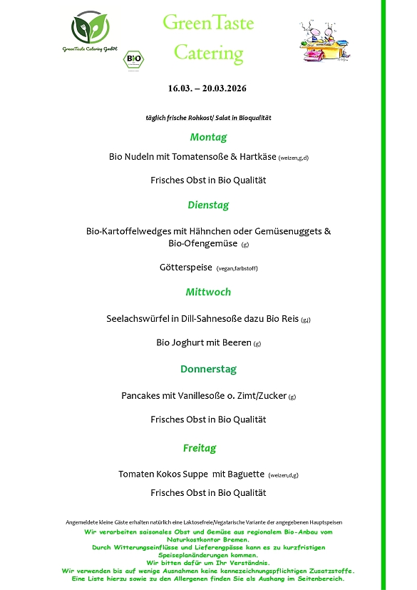 Unser fleißiges Mensa-Team stellt jede Woche einen neuen Speiseplan zusammen und achtet dabei auf eine abwechslungsreiche und gesunde Ernährung. Dieser Speiseplan dient den Mitarbeiter:innen, den Schüler:innen und den Eltern als Übersicht. Hier wird der aktuelle Speiseplan wöchentlich hochgeladen und ist für Sie einsehbar.