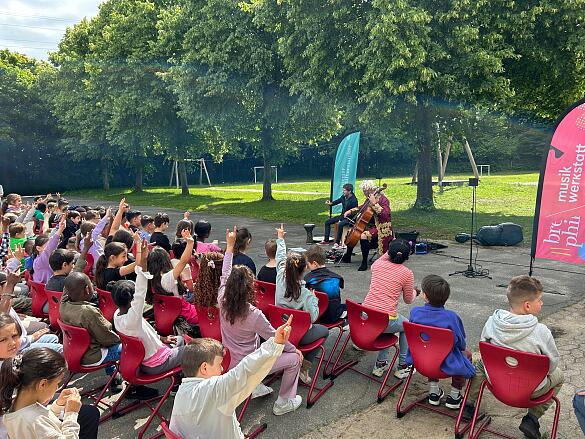 Auf unserem Schulhof konnten alle Kinder aus den Jahrgängen, bei dem Schulhofkonzert unserer musikalischen Freunde dabei sein.